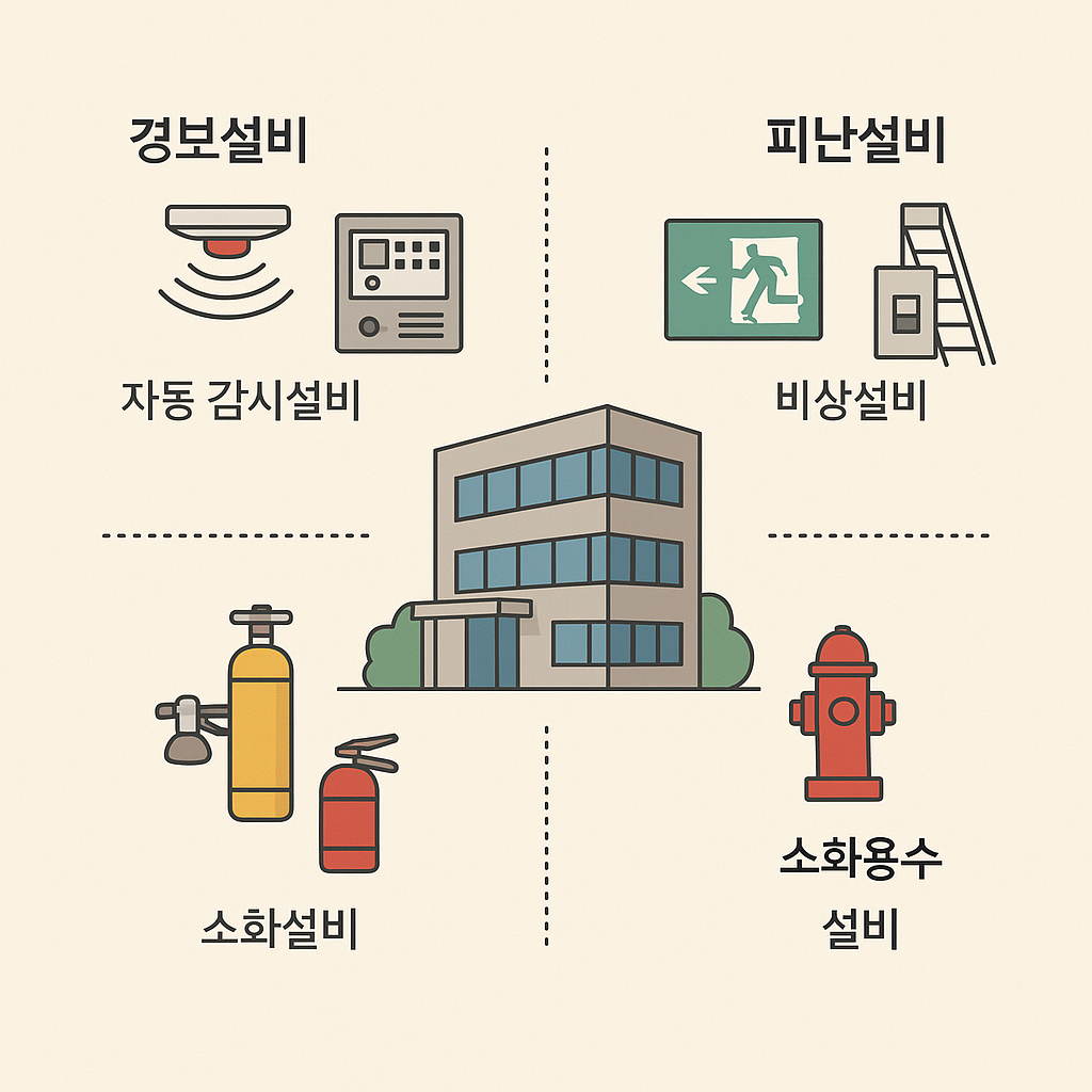 소방시설 종류를 경보, 피난, 제연, 소화, 소화용수설비로 나눠 기능과 중요성을 정리한 종합 안전 가이드입니다.